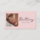 Élevez votre marque de beauté avec cette carte de visite de maquillage photo personnalisable rose pâle et écriture noire, conçue pour faire une première impression durable. Dotée d'un fond rose pâle doux associé à une typographie noire élégante, cette conception chic et féminine allie sophistication moderne et touche personnelle. Le modèle de photo personnalisable vous permet de mettre en valeur votre travail, votre logo ou votre portrait professionnel - instaurant instantanément la confiance et la reconnaissance de la marque.