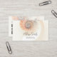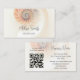 Photo d'une coquille élégante dans les tons beiges nacrés, nom dans une police manuscrite élégante. Avec un code qr scannable à l'arrière. Parfait pour les spas de salon de beauté, massothérapeutes, maquilleurs...