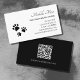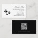 Carte De Visite Code QR Empreintes de pattes Black White Pet Sitte