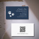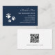 Carte De Visite Code QR Empreintes de pattes Marine Blue Pet Sitte
