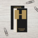Un carte de visite moderne et professionnel utilisant du noir, de l'or et de l'ivoire pour un homme ou une femme. Votre initiale sur le devant doit être personnalisée avec votre nom complet ou votre nom commercial. Au verso se trouve un code QR pour ajouter un "appel à l'action". Aussi votre nom, titre, adresse, téléphone, courriel, site Web et informations sur les médias sociaux. Minimaliste et professionnel pour représenter votre marque ou votre entreprise. Modifiez entièrement la couleur de l'arrière - plan et du texte pour refléter votre marque.