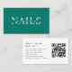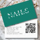 Moderne, vert, QR Code Carte de visite - Disponible en 18 couleurs. Ce design carte de visite élégant et professionnel est doté d'une typographie audacieuse et d'un code QR personnalisé, parfait pour les entrepreneurs d'aujourd'hui qui sont les premiers à faire du numérique. Idéal pour les professionnels de la beauté, les techs à ongles, les artistes fouetteurs, les coiffeurs, les maquilleurs et les experts en bien-être. Customisez facilement votre nom, titre, coordonnées et code QR pour accéder à votre site Web, page de réservation ou profil Instagram. Imprimé sur un carton de haute qualité, ce design est disponible en 18 options de couleurs époustouflantes - noir, rose vif, blanc, beige, et plus encore - pour correspondre à votre marque ou style de salon. Étendez-vous et restez connecté avec une carte qui est