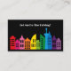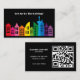 Un design brillant, audacieux et moderne pour tous vos conducteurs professionnels qui naviguent dans le chaos pour les gens partout. Carte noire classique avec une ligne d'horizon colorée de la ville arc-en-ciel et votre slogan à l'avant. Personnalisez facilement vos informations et votre code QR au dos.
