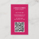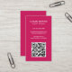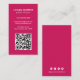 Carte de visite vertical moderne avec un style simple et minimaliste avec votre QR Code sur le devant et les icônes de médias sociaux sur le dos. Tous les éléments design sont en blanc sur un arrière - plan fuschia rose chaud. Un design simple et minimal qui peut être customisé pour n'importe quel professionnel d'affaires.