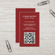 Carte de visite vertical moderne avec un style simple et minimaliste avec votre QR Code sur le devant et les icônes de médias sociaux sur le dos. Tous les éléments de conception sont en blanc sur un arrière - plan bordeaux. Un design simple et minimal qui peut être customisé pour n'importe quel professionnel d'affaires.