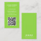 Carte de visite vertical moderne avec un style simple et minimaliste avec votre QR Code sur le devant et les icônes de médias sociaux sur le dos. Tous les éléments de conception sont en blanc sur un arrière - plan vert citron. Un design simple et minimal qui peut être customisé pour n'importe quel professionnel d'affaires.