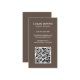 Carte de visite vertical moderne avec un style simple et minimaliste avec votre QR Code sur le devant et les icônes de médias sociaux sur le dos. Tous les éléments design sont en blanc sur un arrière - plan marron. Un design simple et minimal qui peut être customisé pour n'importe quel professionnel d'affaires.