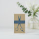 Conception de carte de visite élégante simple avec le motif beige de ciseaux d'arrière - plan et de bleu de texture. Perfectionnez pour le coiffeur, coiffeur.