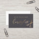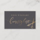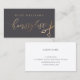 Ce design carte de visite moderne de coiffure présente d'élégants scripts de calligraphie en faux or, des ciseaux et des arrière - plans gris.