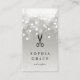 Le design vertical simple et élégant du carte de visite pour coiffeurs présente du lettrage noir classique sur un arrière - plan gris argenté orné d'un éclat de lumières de livres blancs en haut et d'une paire de cils et de sourcils luxuriants. Personnalisez avec deux lignes de texte personnalisé à l'avant, sous une paire de ciseaux styliste, et ajoutez vos coordonnées complètes à l'envers.