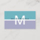 Un carte de visite en aqua et lavande avec un look moderne audacieux pour customiser avec un monogramme.