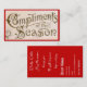 Design carte de visite festif avec des graphismes vintages et élégants. Il se lit Compliments of the Season. . Les graphismes sépia sont dotés d'une mince bordure rouge. Idéal pour la saison des fêtes. Personnalisez l'autre côté avec vos propres détails. Par Alma Wad .Il vient 100 par pack. — Imprimé sur papier de qualité supérieure avec finition perle irisée.