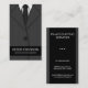 © Sunny Mars Designs - Costume à rayures : Grey Vertical Accountant Cartes de visite - Modèle de carte professionnelle comptable avec l'avant du costume à rayures gris d'entreprise d'un homme, une cravate et des boutons noirs. Parfait pour les comptables financiers, les comptables de gestion, les comptables fiscaux, les conseillers financiers, les consultants, les avocats et tout autre professionnel.