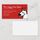 Utilisez ce modèle de carte de visite simple pour animer pour représenter vos services. Conçu dans une couleur qui se démarque et inclut un joli dessin de chien dans l'arrière - plan avec une mise en page simple que vous pouvez modifier en ligne. Créé pour un animal de compagnie assis en service, la marche de chien, ou Vétérinaire. Présenté sur un stock en papier carte de visite d'angle arrondi.