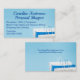 Un carte de visite saisissant avec des sacs cadeaux blancs et bleus. Ce carte de visite moderne à thème de shopping fonctionnerait bien pour un acheteur personnel, ou une entreprise de conciergerie. Facile à personnaliser avec vos propres informations d'entreprise.