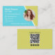 Ce design comprend une connexion avec nous avec le code QR modèle de carte de visite avec ajouter votre propre photo de logo, pour le modèle professionnel d'entreprise, avec les médias sociaux Facebook Instagram icons, et un style contemporain simple minimaliste, avec l'URL d'adresse Web du site Web en ligne, un design de typographie simple moderne, un design élégant de base, idéal pour les petites entreprises boutique magasin, avec un modèle coloré bleu turquoise et vert