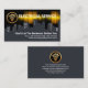 Le logo doré est en haut, sur une couverture grise, suivi de votre nom prestigieux, des coordonnées et d'une option de slogan pour annoncer vos services.