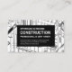 Faites une déclaration audacieuse avec le Carte de visite de construction Black & White Blueprint, conçu pour les entrepreneurs, les bricoleurs et les professionnels de la rénovation. Ce design élégant et monochrome est doté d'un arrière - plan architectural détaillé, lui donnant un avantage moderne et professionnel. La disposition en noir et blanc à contraste élevé vous permet de lire facilement vos coordonnées tout en vous donnant un sentiment de précision et de fiabilité. Parfait pour les constructeurs, les spécialistes de l'amélioration de la maison et les gens de métier qui cherchent à mettre en valeur leur expertise d'une manière propre et élégante. Personnalisez-le avec vos détails et faites une impression durable!