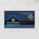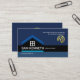 Le design présente une couverture bleue accentuée par un design créatif de toit bleu maison sur la face gauche de la carte. Le toit bleu de la maison abrite votre nom prestigieux et votre titre de travail dans une colonne noire avec le nom d'entreprise juste en dessous. Les coordonnées et le logo de la maison de l'arbre à or que vous pouvez utiliser se trouvent dans le coin supérieur droit.