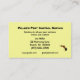 Voici un carte de visite qui fait la publicité d'un service de lutte antiparasitaire. Il comprend la chenille du papillon noir Swallowtail (Papilio polyxenes), également connu sous le nom d'American Swallowtail, Parsnip Swallowtail ou Parsley Worm. Cette espèce vit et dine sur les membres de la famille du persil (y compris les carottes, l'aneth, le fenouil et les perses). Il se distingue sur la carte en couleurs de vert néon, jaune et noir en mangeant sur une feuille. Le texte spécifique est au verso avec une petite fourmi. Tout le texte peut être customisé pour convenir à votre entreprise.