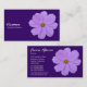 Un carte de visite avec un motif photo Cosmos violet. Nom d'entreprise etc sur le devant avec d'autres détails sur le verso avec le même motif et le même style.