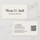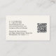 Carte de visite professionnel moderne crème légère avec votre nom dans un script élégant en gras et votre titre et vos informations de contact (tels que email, numéros de téléphone, nom et adresse postale) dans une typographie simple et propre. Ajoutez l'adresse URL de votre site Web pour créer un code QR numérisable connecté à votre site Web, votre portefeuille, votre profil de médias sociaux ou toute autre plate-forme qui présente votre travail, ce qui facilite l'exploration de votre expertise par les clients et les clients.