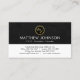 Cover features a black marble grunge layer at the top of the card. Here lies an empty gold circle logo where you can place your name initials-monogram. (You can use different sizes of fonts or styles to your liking). After this comes your prestigious name and job title. Inside the white layer lies your contact details.