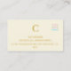 Un carte de visite professionnel minimaliste crème avec texte de couleur or. La carte a le nom de l'entreprise sur le devant avec le verso ayant les informations de l'entreprise. Remplacez le logo par le logo de votre entreprise. Le dos avait également une initiale élégante représentant le nom de votre entreprise ou votre nom. Il peut également être supprimé si vous le souhaitez. Élégant et simple. Une carte professionnelle adaptée aux spas ou professionnels de la cosmétique ainsi qu'un avocat. D'une gamme de Fine Designs de Chessie. Visualisez la collection via le lien plus loin dans la page produit.