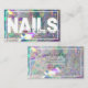 Cartes de visite de cristal Iridescente. Ce design comprend un nom d'entreprise personnalisable et des détails de magasin ensemble contre un magnifique arrière - plan moderne irisé comme du cristal avec une police blanche en gras et un contour mettant en évidence vos services d'ongles professionnels. Si vous avez des problèmes, n'hésitez pas à me contacter. Consultez notre boutique pour en savoir plus.