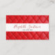 Laissez-vous tenter par cette carte de visite en cuir rouge audacieuse et luxueuse, conçue avec un motif cousu en losange pour un look raffiné et haut de gamme. L'avant présente une bande blanche élégante pour votre nom et votre titre, tandis que l'arrière comprend un carré blanc propre pour présenter vos coordonnées. Parfait pour les professionnels de la mode, de l'automobile, de l'immobilier ou de toute industrie où l'image de marque forte et confiante est essentielle. Entièrement personnalisable avec vos données personnelles.
