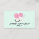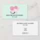 Un carte de visite avec une adorable illustration graphique. Un chaton blanc avec une jolie image empreinte de patte sur sa fourrure. Dormir tranquillement. Un grand coeur rose derrière elle et quelques petites étoiles aussi. Arrière - plan vert menthe.