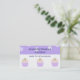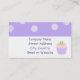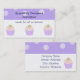 Un joli design avec trois cupcakes en rose tendre et mauve avec de somptueuses fleurs de bonbons sur le dessus. Une bordure de mauve avec des pois blancs. Customisez avec vos propres informations selon vos besoins.