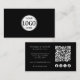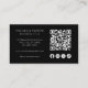 Black add your own logo professional business card with QR code and social media icons on the back.
