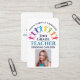 Ce mignon carte de visite d'enseignant personnalisé présente le nom de votre école primaire et le titre de votre emploi. Customisez avec vos informations de personnel sous le groupe arc-en-ciel cool des enseignants tenant la main. Des personnages en allumettes levant les bras dans ce design communautaire coloré fait un beau design. Personnalisez avec vos propres coordonnées et heures de bureau au dos.