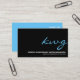 Faites votre monogramme se tenir sur son propre mérite avec ce carte de visite saisissant. N'importe quelle quantité d'initiales ou de mot dans un cursive cyan lumineux fait un impact contre le noir riche. L'inverse imprime le texte customisé dans le blanc contre le même bleu. La carte souple et contemporaine pour des entreprises avec un bord créatif comprenant des services aux entreprises, la vente au détail, la vente en gros, la vente, la publicité ou les sociétés dans le divertissement mettent en place. Disponible dans des couleurs alternatives avec les produits assortis.