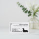 Un design simple en noir et blanc, avec une silhouette d'un Dachshund aux cheveux longs et un motif géométrique propre dans un coin.