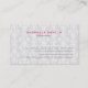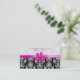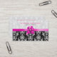 Elégant damas à fleurs rétro rose et blanc avec arc rose et goujon diamant (image de diamant), modèle de carte de visite entièrement personnalisable.