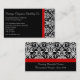 Carte de visite moderne et design. Le jeu de jumelage luxueux fashionally présente un motif damassé arrière - plan noir et blanc éclatant avec une bande d'accent rouge écarlate cramoisi. La touche parfaite pour ce mariage ou ce jeu de couleurs d'évènement propre et impeccable. Style simple pour la dame avec un sens design de la mode et de l'élégance. Ce design est disponible en tant qu'ensemble complet de concordance!