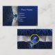 Carte De Visite DAMASK MONOGRAM ruban blanc noir bleu foncé