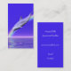 Un carte de visite bleu avec un dauphin plongeant dans l'océan, suivant un arc-en-ciel.