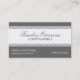 Un regard au panneau bordé de dentelle là-dessus ces carte et énonce juste l'élégance. C'est une carte souple qui peut fonctionner pour des organisateurs, des conseillers nuptiales, des ouvrières couturières ou n'importe quelles affaires avec un talent sophistiqué. Un panneau blanc bordé avec la frivolité accentue la raison sociale contre le gris de charbon de bois. Le panneau est traité la manière opposée sur l'inverse d'accentuer le reste d'information d'affaires. Disponible dans des couleurs alternatives avec les produits assortis.