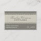 Un regard au panneau bordé de dentelle là-dessus ces carte et énonce juste l'élégance. C'est une carte souple qui peut fonctionner pour des organisateurs, des conseillers nuptiales, des ouvrières couturières ou n'importe quelles affaires avec un talent sophistiqué. Un panneau crème bordé avec la frivolité accentue la raison sociale contre le taupe foncé. Le panneau est traité la manière opposée sur l'inverse d'accentuer le reste d'information d'affaires. Disponible dans des couleurs alternatives avec les produits assortis.
