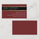Une carte de contact professionnelle élégante et classique pour toute profession Une bande noire avec votre nom et votre métier sur un arrière - plan bordeaux (avec informations supplémentaires)