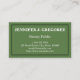 Caractéristiques de conception ce de base de carte de visite un arrière - plan vert, et une frontière noire à deux lignes. Il pourrait être employé par un professionnel du droit tel qu'un notaire, l'avocat à la loi, l'avocat ou l'avocat-conseil. Les détails de nom, de profession et de contact peuvent être personnalisés.