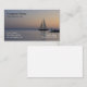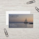 Un carte de visite montrant un seul voilier naviguant au-delà d'une jetée dans un lac au coucher du soleil. N'importe quel amoureux de la nature, un environnementaliste ou quelqu'un qui aime juste la voile pourrait utiliser cette carte.