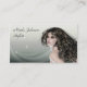 Carte de visite avec la belle femme avec de longs, bouclés cheveux portant le beau maquillage. Arrière - plan vert abstrait, avant et dos de gradient. Perfectionnez pour des salons de coiffure, des artistes de maquillage, des cosmeticians ou la mode.