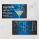 Les images de Bokeh sur un noir et un fond d'indigo font ce carte de visite pour un martini barrer ou le salon de cocktail se tenir. Un grand martini cultivé recouvre l'arrière - plan et les images de bokeh sont répétées sur l'inverse. Disponible dans des couleurs alternatives avec les produits assortis.