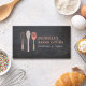 Un trio d'ustensiles de cuisine communs avec votre nom ou nom de société fait le logo parfait sur ce carte de visite personnalisable pour une entreprise de restauration, boulangerie, restaurant ou toute entreprise alimentaire. Placez-vous sur un arrière - plan en damier noir pour une sensation de cuisine. © 1201AM CREATIVE