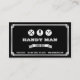 Le carte de visite de bricoleur avec la rétro frontière et le bricoleur usinent des icônes. La carte a un modèle de couleurs noir et blanc. Perfectionnez pour un bricoleur, un mécanicien automobile, un charpentier ou un homme de réparation d'appareils.
