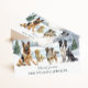 Un carte de visite de garde de chien aquarelle. Idéal pour une balade à chiens, un gardien d'animaux, un internat pour chiens ou une garderie pour chiens. Les images aquarelles de quatre chiens, dont un berger allemand, le labrador et le collie frontalier, sont entourées de paysages forestiers et hivernaux. Personnalisez-vous en ajoutant vos coordonnées commerciales et de contact à l'avant et à l'arrière.